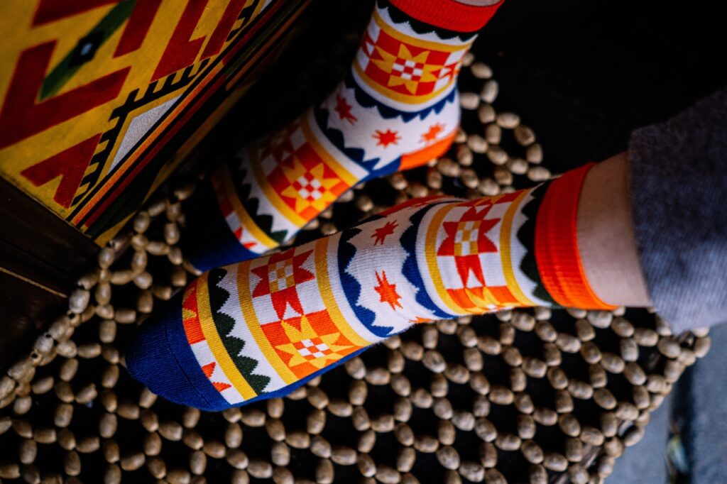 - Якість, яку видно. Рівні шви, щільне в’язання, принт, який не облізе після першого прання. Добрі шкарпетки відрізняються від поганих одразу — і на вигляд, і на дотик.